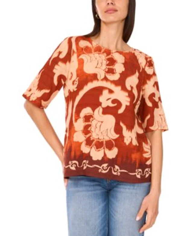 Sam & Jess Women's Printed Crewneck 3/4-Bell-Sleeve Blouse