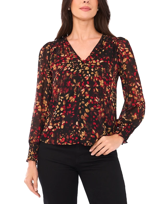 Sam & Jess Petite V-Neck Smocked-Shoulder Blouse