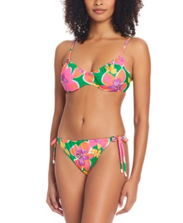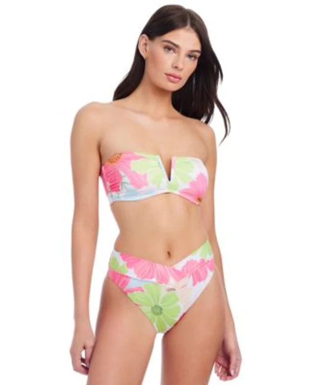 Sanctuary Womens Charming Floral Bandeau Bikini Top V Waist Bottoms