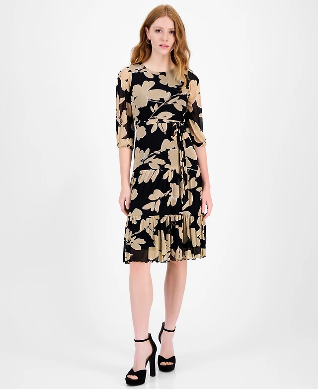 Sandra Darren Petite Printed Tiered-Hem Midi Dress