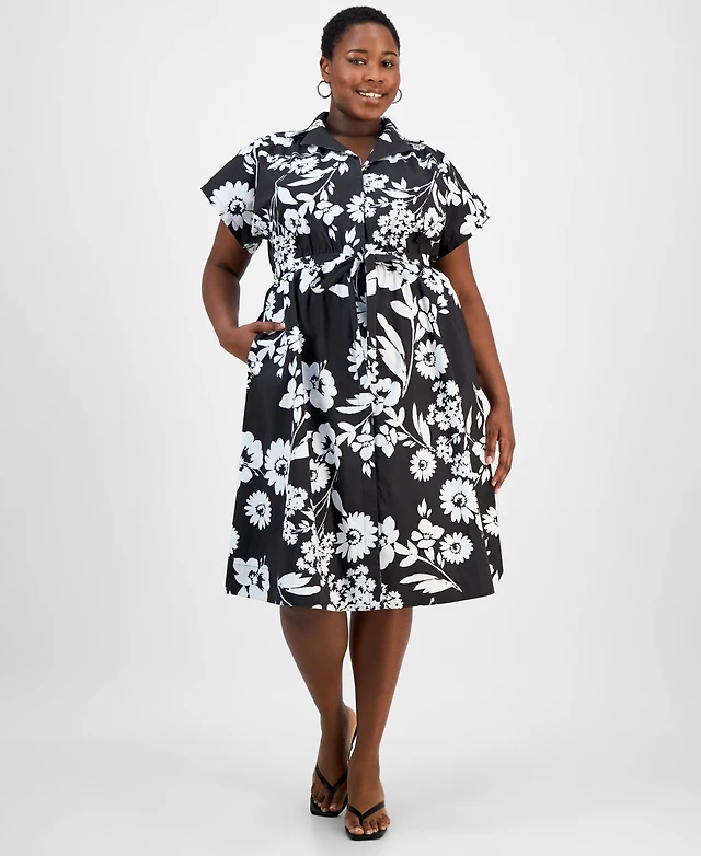 Sandra Darren Plus Printed Short-Sleeve Shirtdress