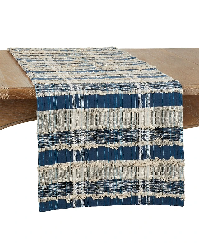 Saro Lifestyle Crafted Multi-Pattern Fringed Table Runner, 16"x72"