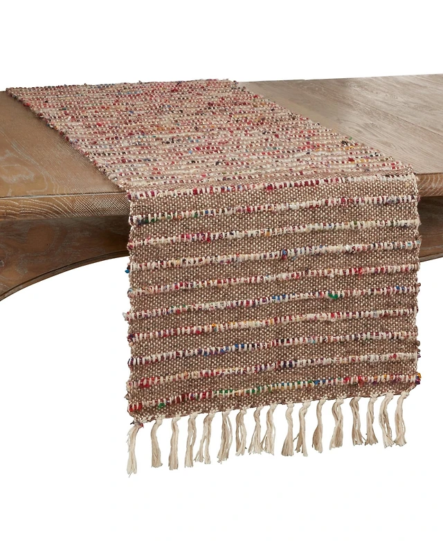 Saro Lifestyle Boho Chic Fringed Stripe Table Runner, 16"x72"