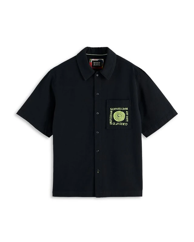 Scotch & Soda Men's Relaxed Fit Short Sleeve Embroidered Button-Front Shirt