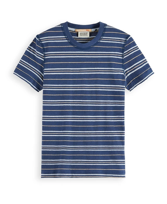 Scotch & Soda Men's Relaxed Fit Short Sleeve Striped Yarn-Dyed Crewneck T-Shirt