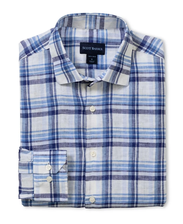 Scott Barber Men's Newport Poplin Plaid, Blue