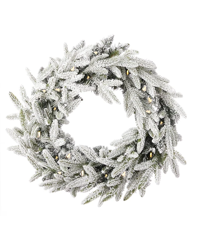 Seasonal 24" Royal Oaks Flocked Fir Wreath, 40 Warm Led Lights