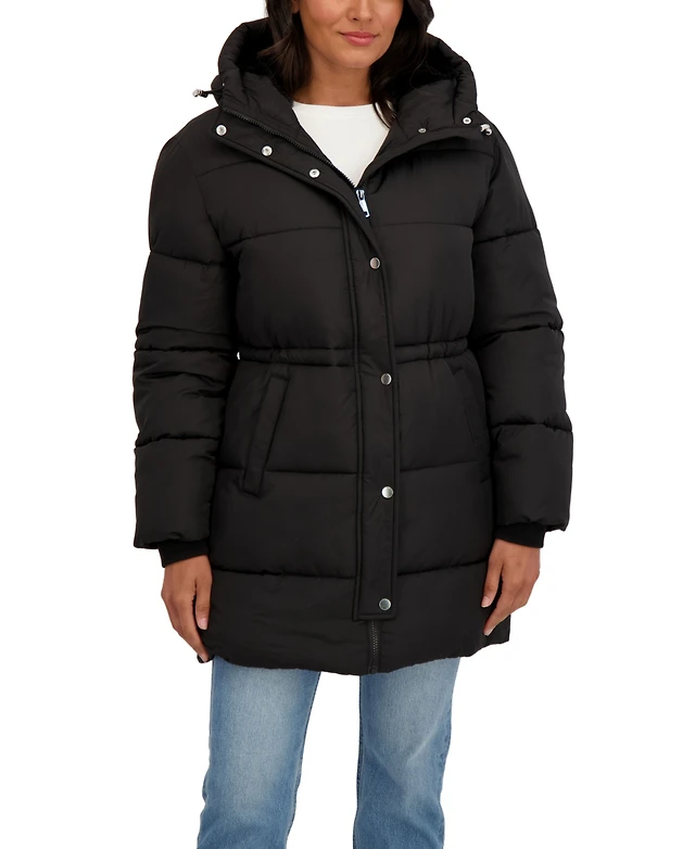 Sebby Collection Women's 3/4 Cozy Lined Hooded Puffer Coat With Drawstring Waist