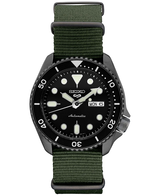 Seiko Men's Automatic 5 Sports Green Nylon Strap Watch 42.5mm