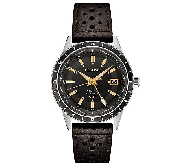 Seiko Men's Automatic Presage Gmt Brown Perforated Leather Strap Watch 41mm