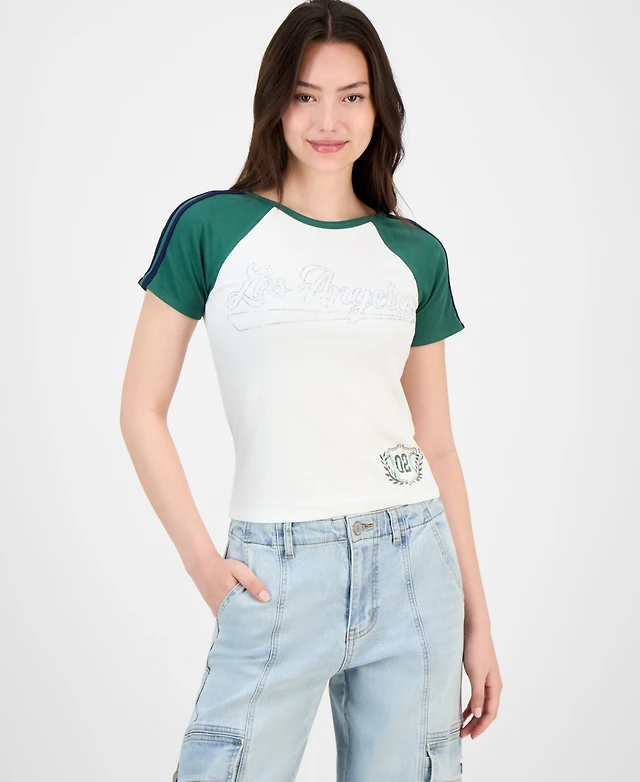 Self Esteem Juniors' Los Angeles Rhinestone Raglan Short-Sleeve T-Shirt