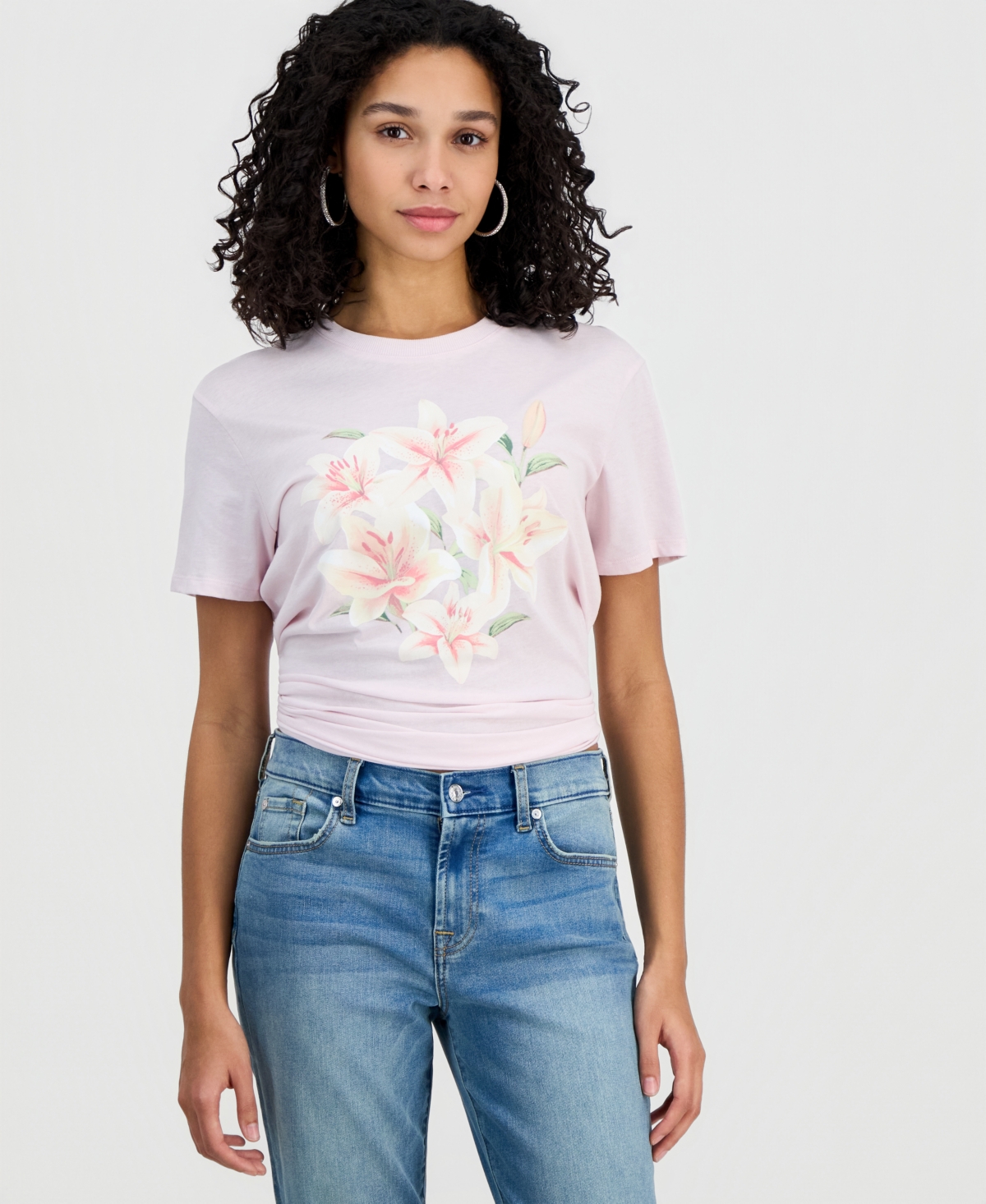 Self Esteem Juniors' Lily Flower Crewneck Short-Sleeve T-Shirt
