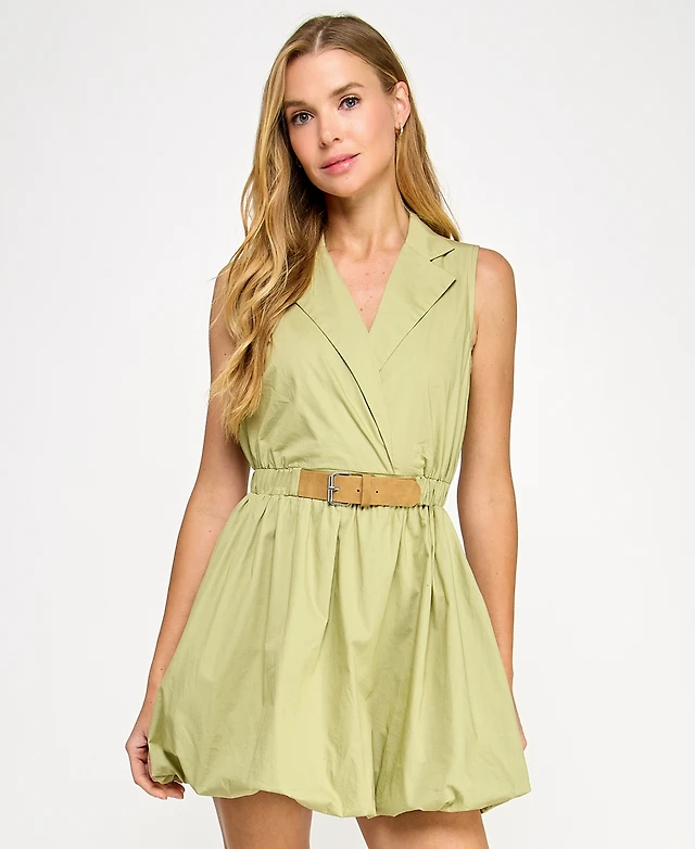 Seni & Cade Juniors' Surplice Belted Short Bubble Dress