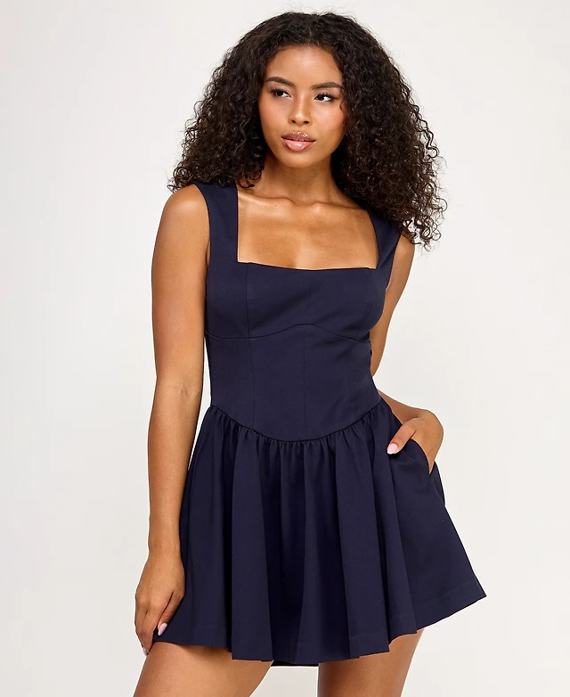 Seni & Cade Juniors' Sleeveless Drop Waist Short Dress