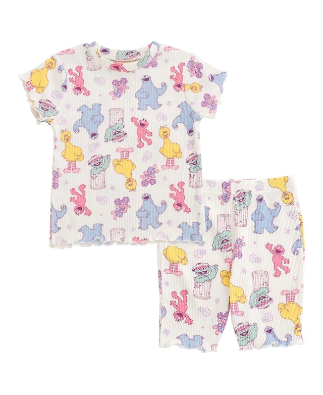 Sesame Street Baby Girls Ribbed T-Shirt and Shorts Outfit Set