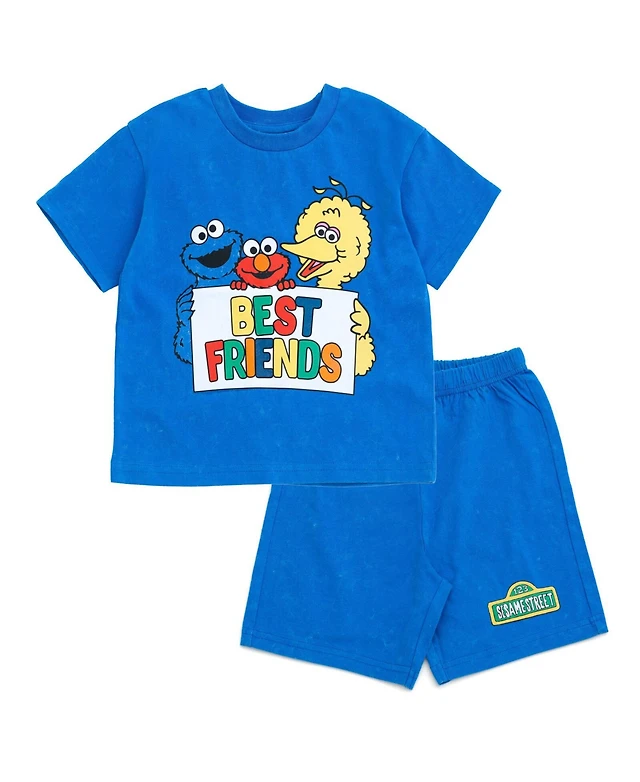 Sesame Street Baby Boys Oscar the Grouch Elmo Bert and Ernie Graphic T-Shirt Shorts Outfit Set Infant to Little Kid