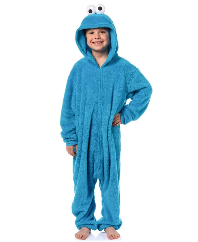 Sesame Street Kids Character Union Suit Kigurumi Hooded One Piece Footless Fleece Pajama