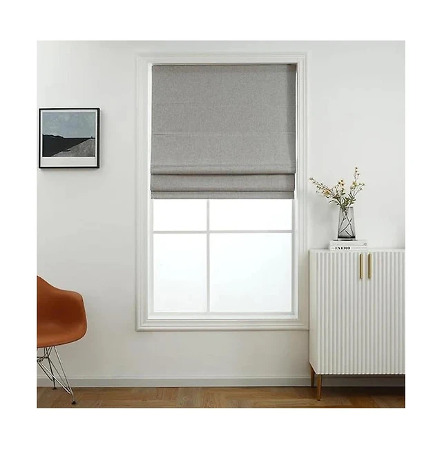 Shadisfy Linen Blended Belgian 100% Blackout Roman Shade Poly 39x64 Light Grey