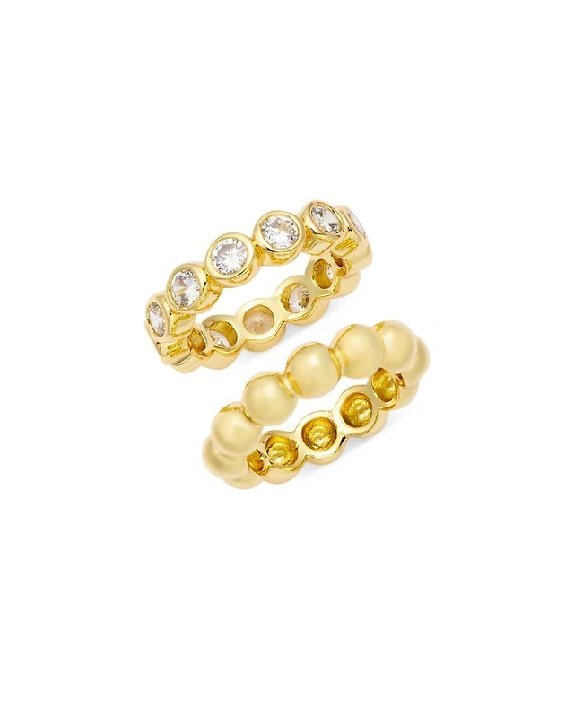 Cubic Zirconia Bezel Rings, Set of 2