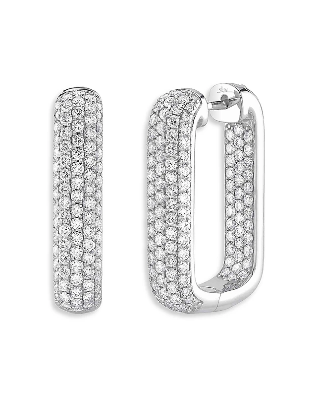 Shy Creation 14K White Gold Kate Diamond Pave Rectangle Hoop Earrings