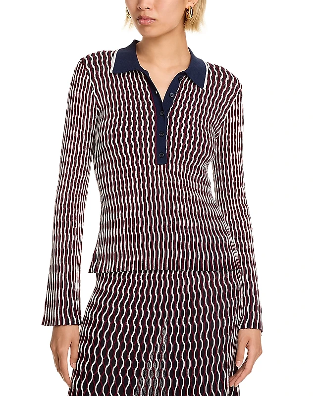 Simkhai Colleen Wavy Striped Polo Shirt