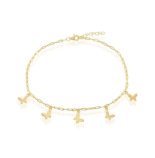 Simona Sterling Silver Evil Eye Charms Paperclip Anklet - Gold Plated