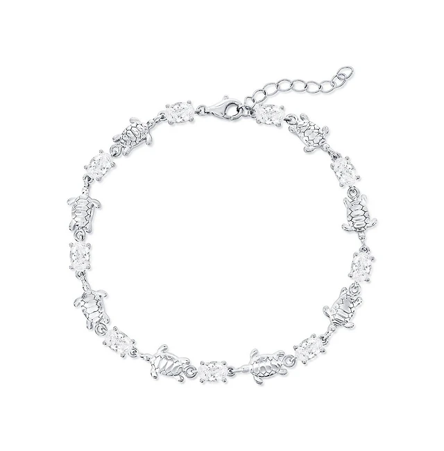 Simona Sterling Silver, Alternating Elephant & Oval Cz Bracelet