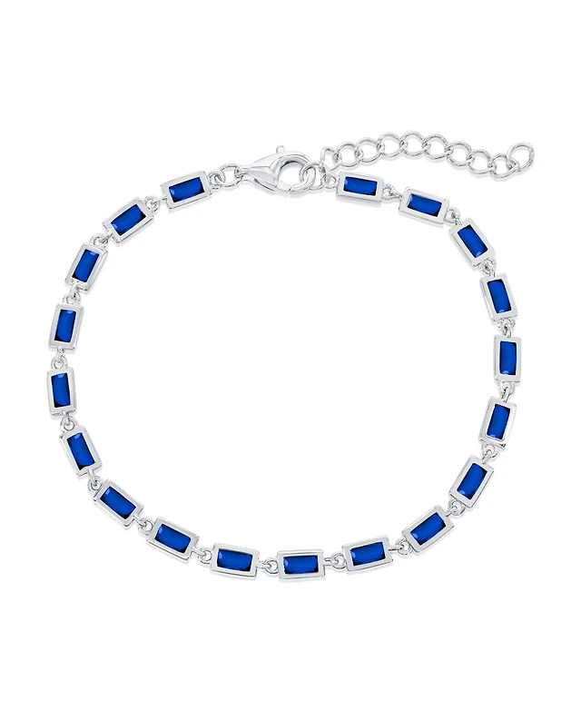 Sterling Silver Beaded Outline Round & Oval Cz Bracelet (Green, Blue, Or Red)