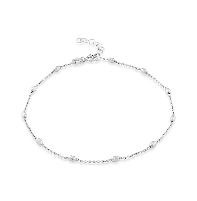 Simona Sterling Silver Diamond Cut Small Oval Beads Anklet