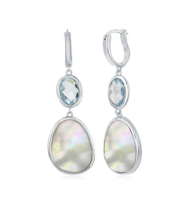 Simona Sterling Silver Oval Blue Topaz and Irregular Design Mother of Pearl Earrings