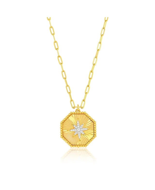 Simona Sterling Silver, Center North Star Cz, Octagon Necklace - Gold Plated