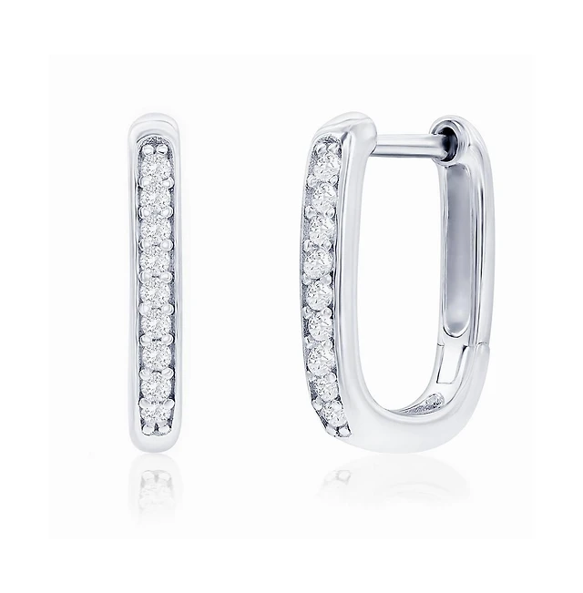 Simona Sterling Silver Rectangle Shaped Cz Hoop Earrings