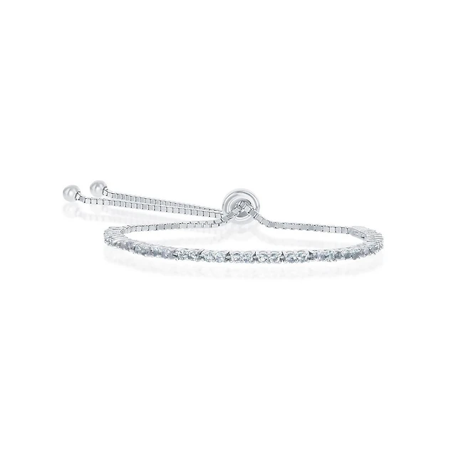 Simona Sterling Silver 2mm Birthstone Cz Tennis Adjustable Bolo Bracelet