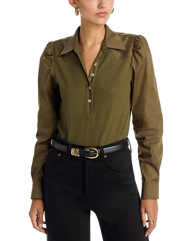 Single Thread Stretch Poplin Elbow Sleeve Top