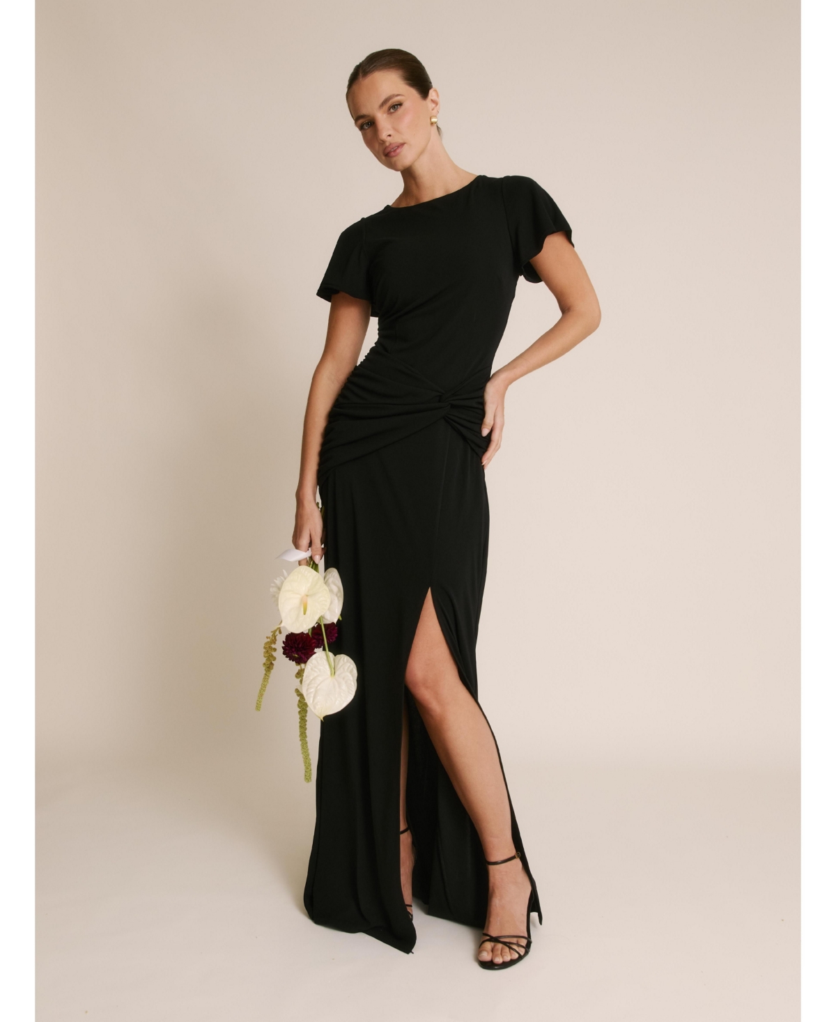 Six Stories Women's Knot Panel Flutter Sleeve Stretch Dresses