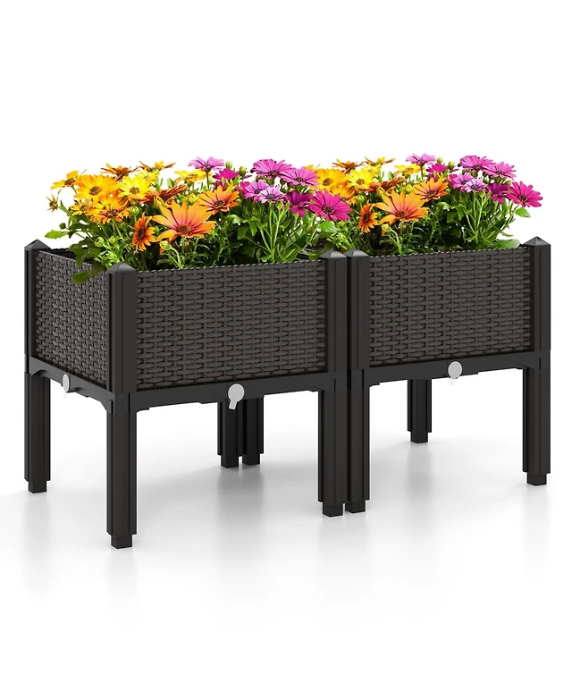 Skonyon 2 Set Elevated Plastic Raised Garden Bed Planter Kit for Flower Vegetable Grow-Brown
