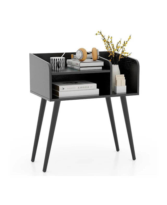 Mid Century Modern Nightstand with Open Shelves for Bedroom Storage