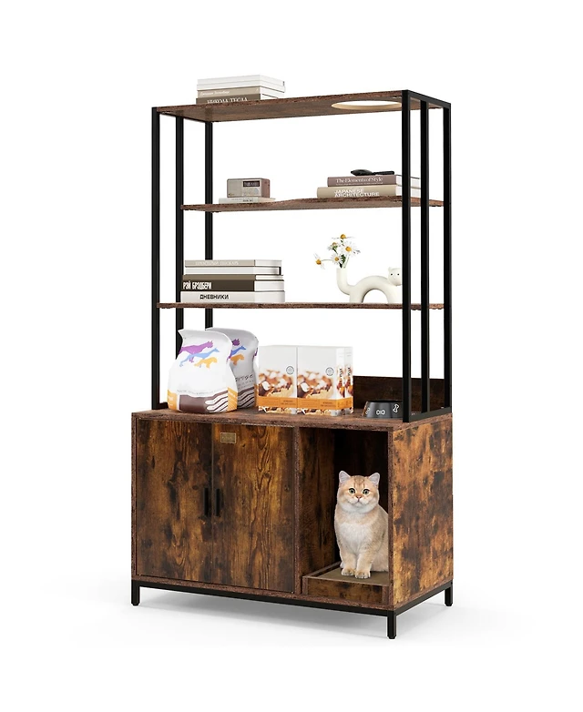 Flip Top Hidden Cat Washroom Furniture with Double Barn Doors and Removable Divider