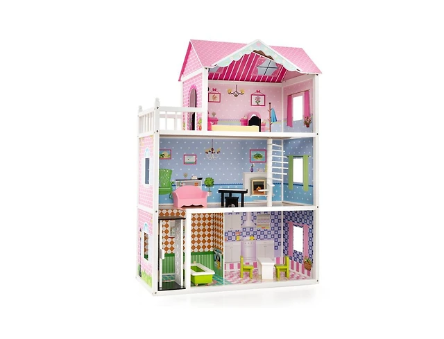 Slickblue Wooden Dollhouse with Working Elevator and Rotatable Staircase-Pink