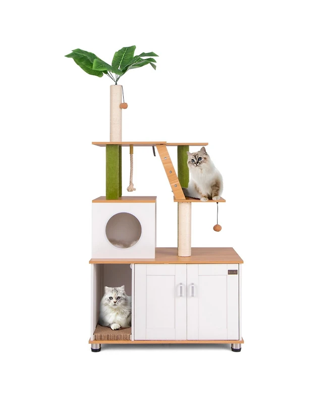 Tower Condo Cat Tree with Scratching Posts & Ladder Multi-Level Playhouse for Cats
