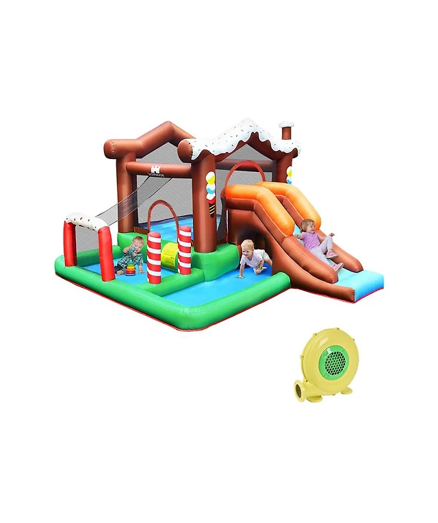 Inflatable Bounce Castle with Long Water Slide and 735W Blower