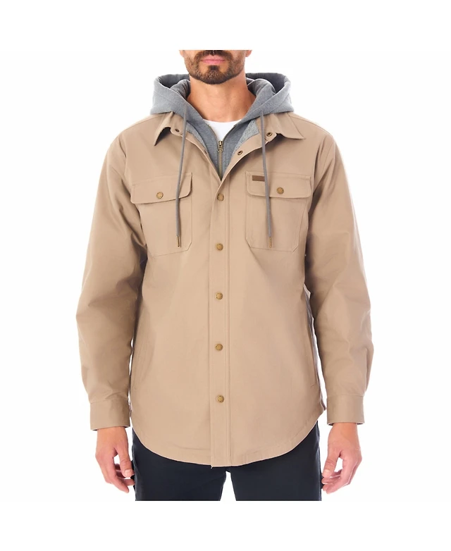 Smith's Workwear Men's Sherpa-Lined Hooded Stretch-Canvas Snap Shirt-Jacket