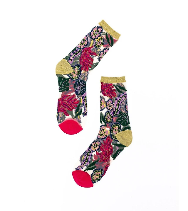 Sock Candy Women's Serpentine Floral Black Sheer Sock