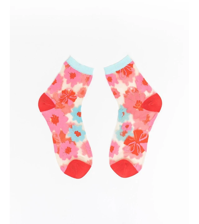 Sock Candy Women's Strawberry Daisy Ruffle Sheer Sock