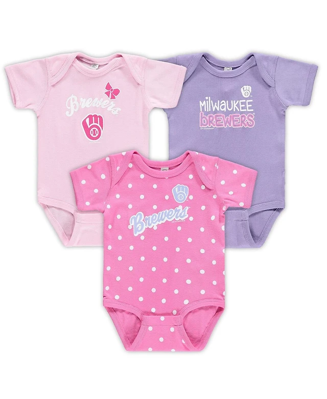 Infant Boys and Girls Soft As A Grape Pink, Purple Milwaukee Brewers Rookie Creeper 3-Pack