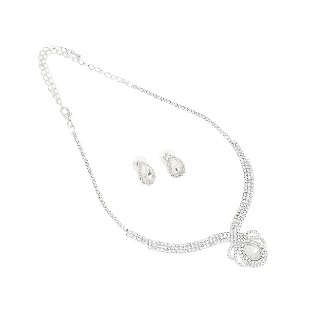 Sohi Women's Silver Bling Cluster Necklace And Earrings (Set Of 2