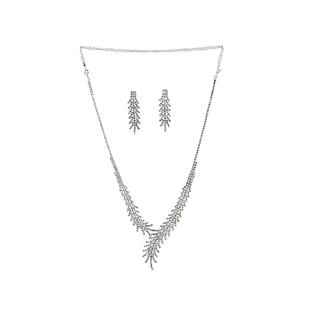 Sohi Women's Silver Embellished Cluster Drop Earrings