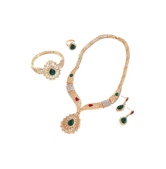 Sohi Women's Gold Teardrop Stone Necklace, Earrings, Bracelet And Ring (Set Of 4)