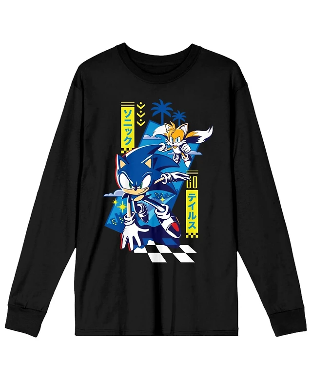 Sonic The Hedgehog & Tails Men's Black Long Sleeve Shirt-Medium