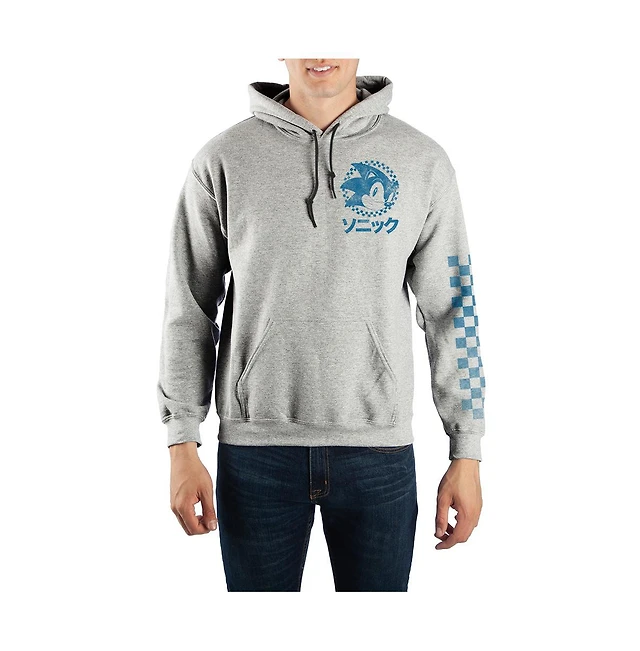 Sonic The Hedgehog Kanji Text Pullover Hooded Sweatshirt-Large